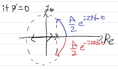 x(t)=Acos(2\pi f_{0}t+\phi)=\frac{A}{2}{e^{j\phi}e^{j2\pi f_{0}t} +e^{-j\phi}e^{-j2\pi f_{0}t}}
