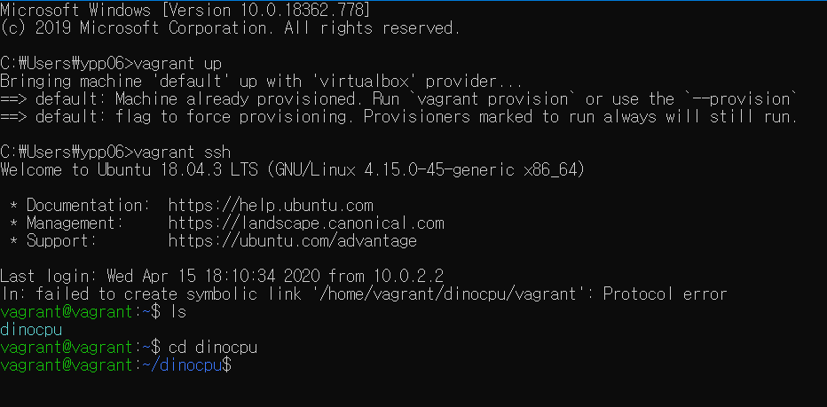 예를 들어 위의 <그림0>에서 현재 vagrant 폴더에 위치해있고, dinocpu에 들어가고 싶다면