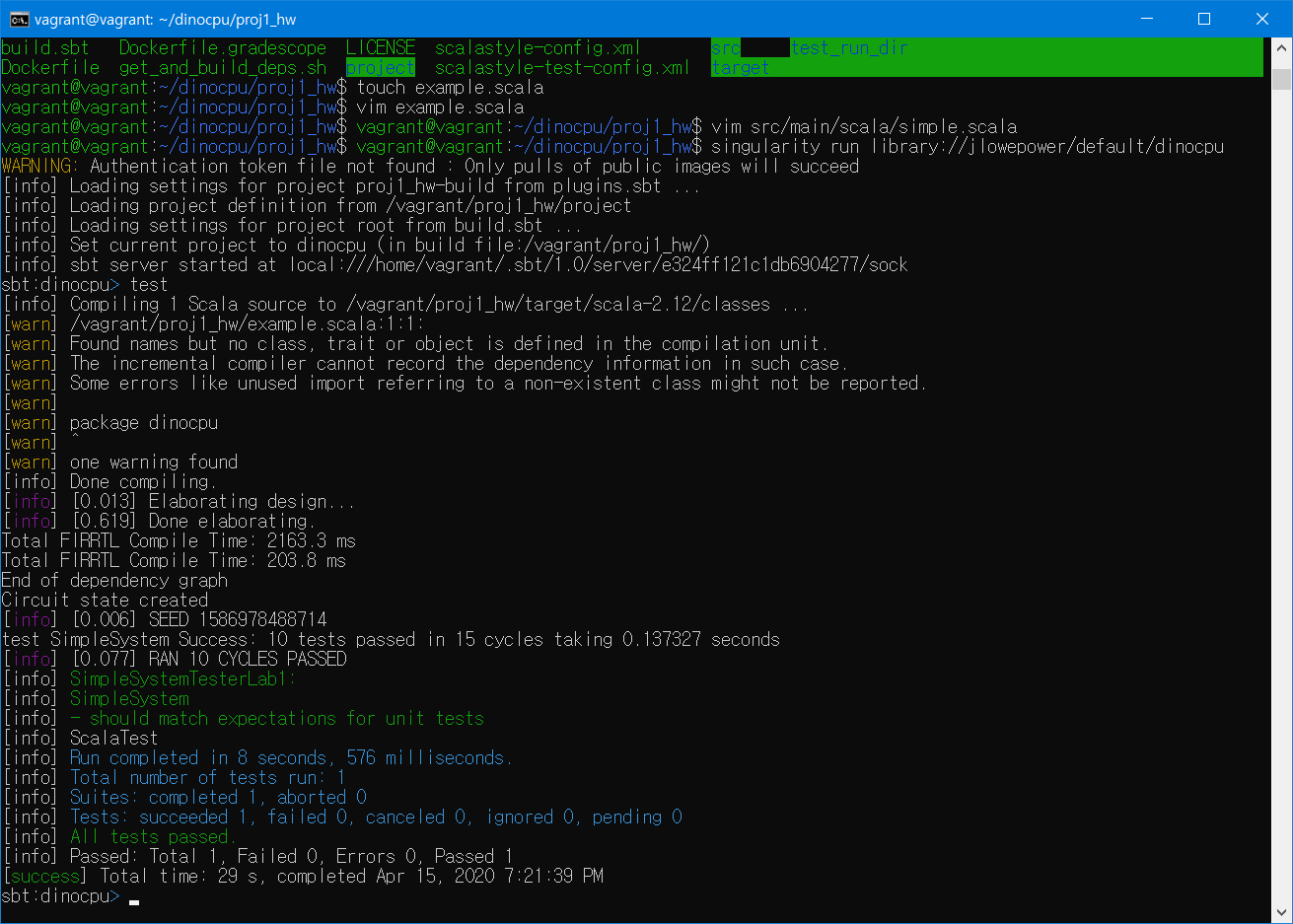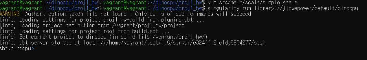 현재 검사를 끝내고 sbt:dinocpu> 커맨드 창에서 ctrl+C를 누르면 나올 수 있다. 그러면 다음 커맨드를 입력하자. vagrant에 접속한 환경에서 해야한다!!!!!