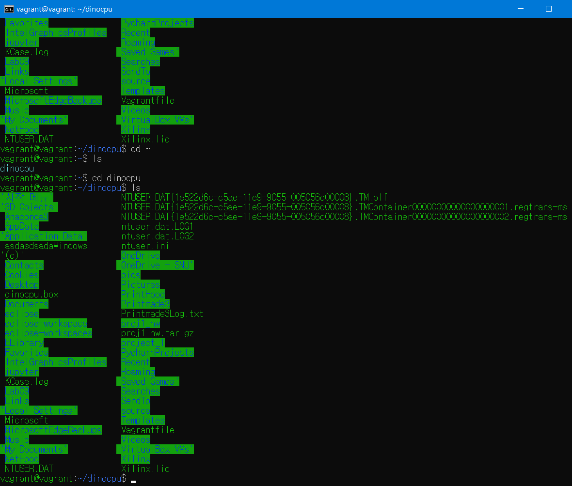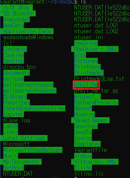 예를 들어 밑의 그림0을 보면 vagrant 디렉토리에 dinocpu라는 파일/디렉토리 가 있는 것을 확인할 수 있다. (실제로 project에서 dinocpu는 디렉토리이다. )