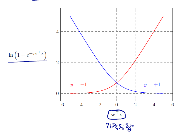 - 실제 Data가 +1일 때 가중치 합(wtx)이 0보다 아주 커야 error가 0에 가까워 진다.